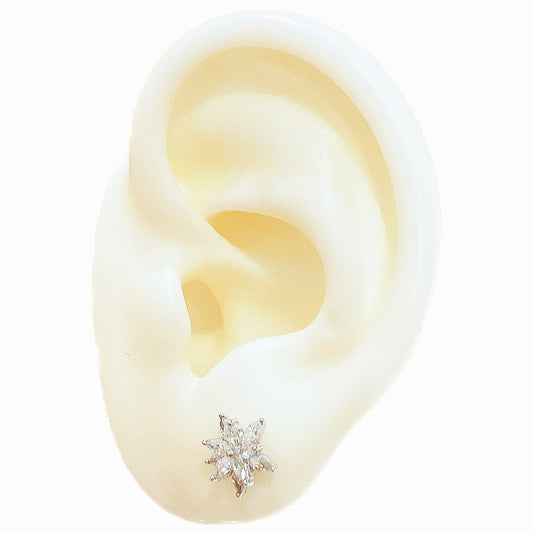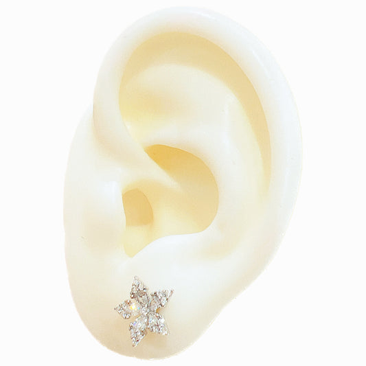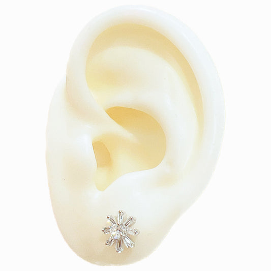 White zircon flower silver 925 earrings