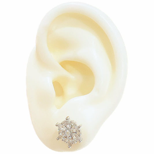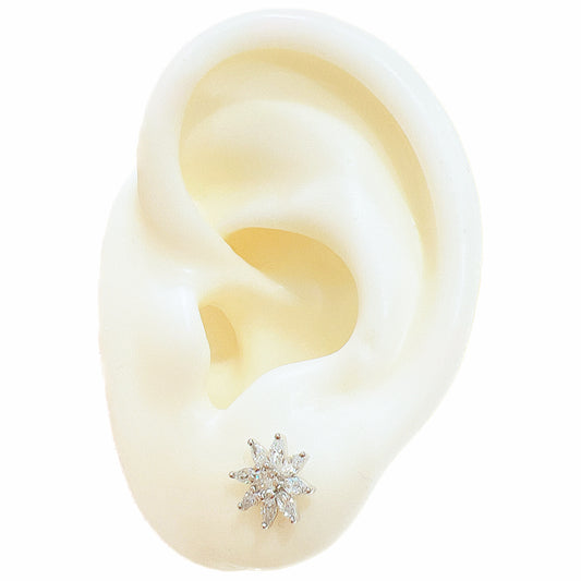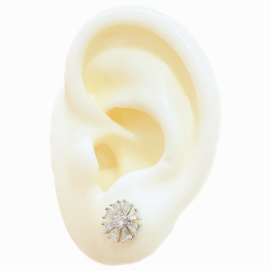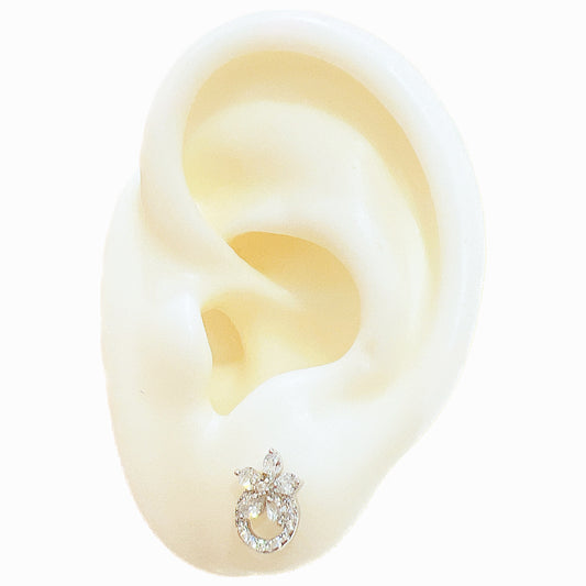 White zircon flower shaped silver 925 jewelry earrings