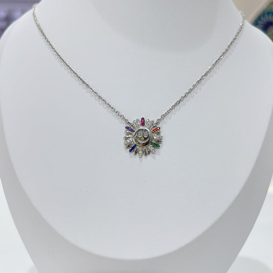 Rainbow color zircon happy face flower silver 925 necklace