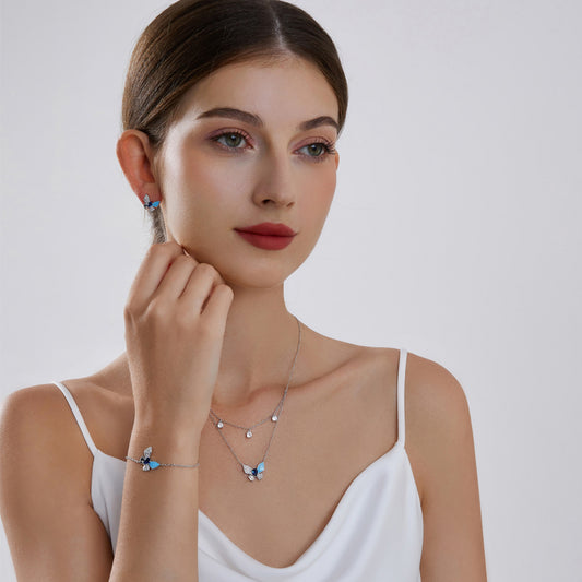 Sapphire and white zircon light blue enamel butterfly silver 925 jewelry set