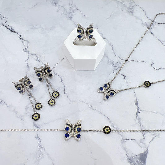 Multicolor cz butterfly and evil eye silver 925 jewelry set