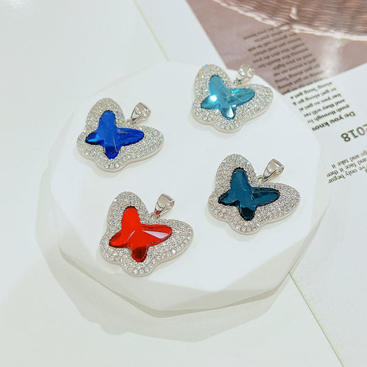 Butterfly crystal surrounded with white zircon silver 925 pendant