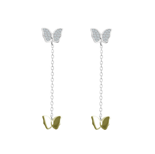 Sapphire and white zircon butterfly evil eye silver 925 dangling earrings