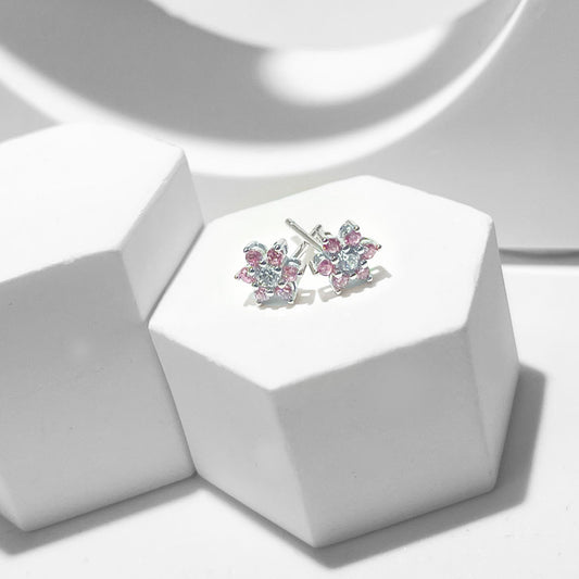 Silver House Hexagonal Star Pink Zircon Silver 925 Earrings Fashion