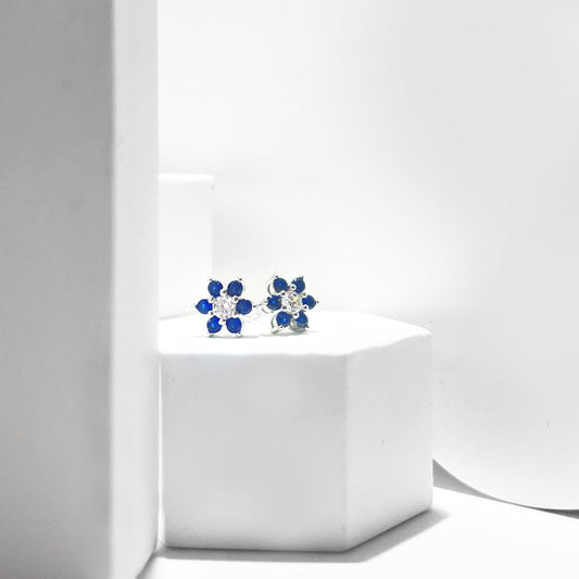 Silver House Hexagonal Star Blue Zircon Silver 925 Earrings Fashion