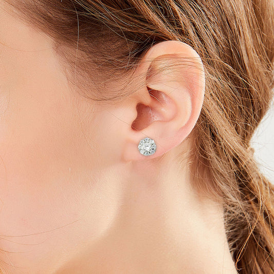 Silver House 5MM White Zircon Silver 925 Rotatable Earrings Sparkling