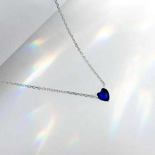 Silver House Sapphire Heart Zircon Silver 925 Necklace Simplicity Elegant