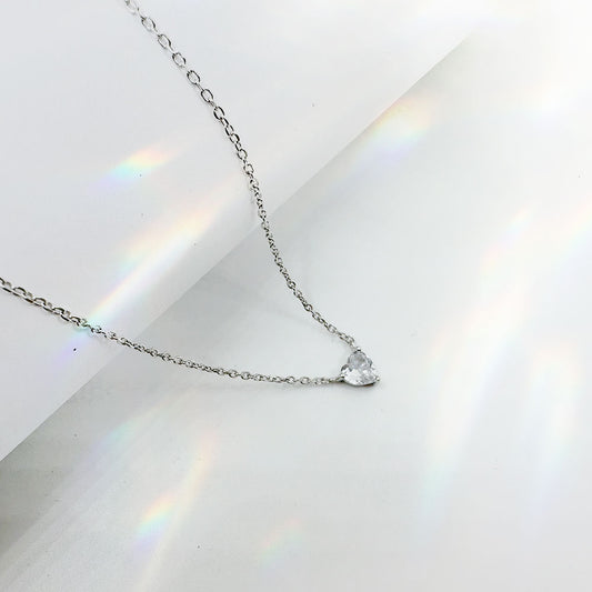 Silver House White Heart Zircon Silver 925 Necklace Simplicity Elegant