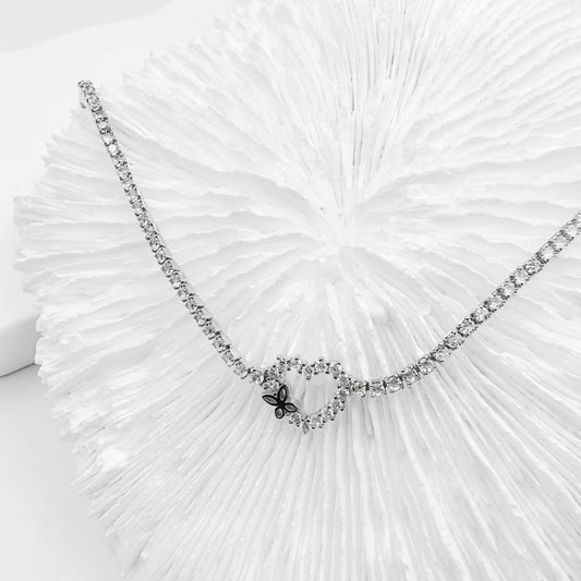 Silver House Heart Shape & Butterfly Zircon Silver 925 Necklace Sweet