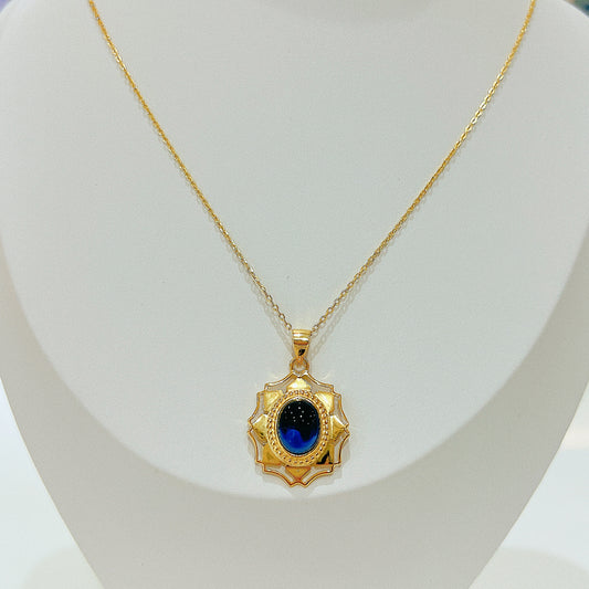 Amethyst oval gemstone golden silver 925 necklace