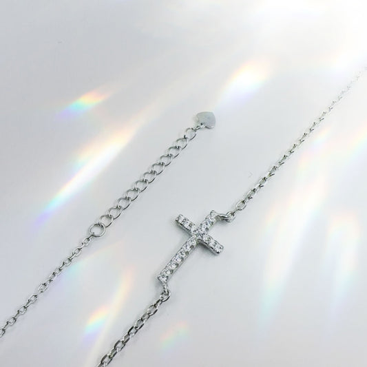 Silver House White Zircon Cross Silver 925 Necklace Simplicity Elegant Belief