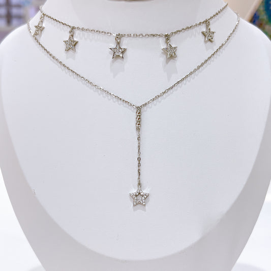 White zircon dark blue enamel star shape evil eye silver 925 necklace