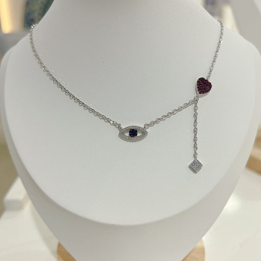 Sapphire and white zircon marquise evil eye silver 925 necklace