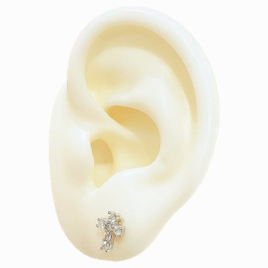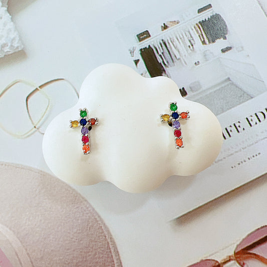 Rainbow multicolor stones cross shape religion silver 925 earrings