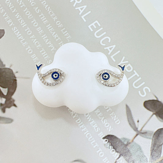 White zircon dark blue enamel heart shaped evil eye silver 925 jewelry earrings