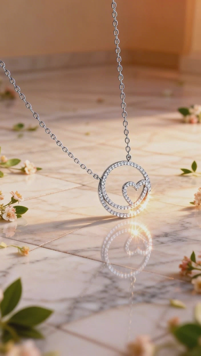 Silver House Dainty Heart Necklace with Brilliant Cubic Zirconia
