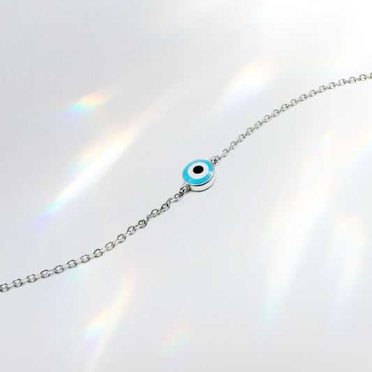 White Enamel White Zircon Evil Eye Silver 925 Bracelet