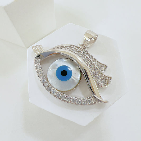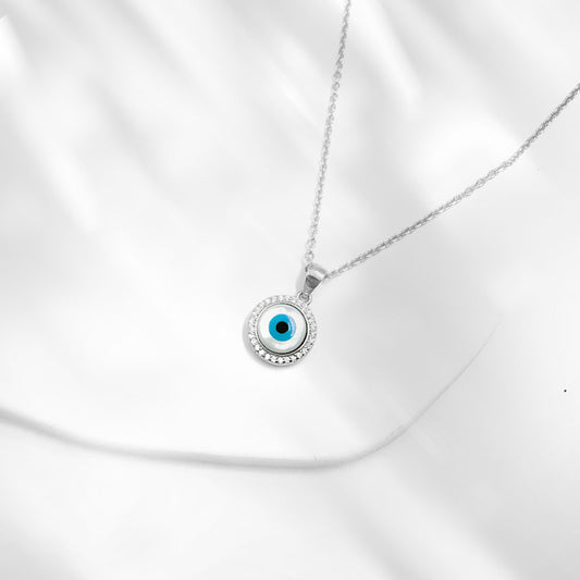 White zircon golden round evil eye silver 925 pearl chain necklace