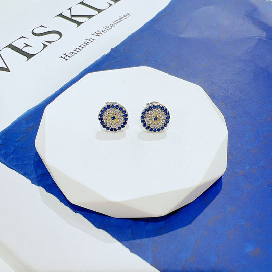 Sapphire and yellow zircon 10mm round shape evil eye silver 925 earrings