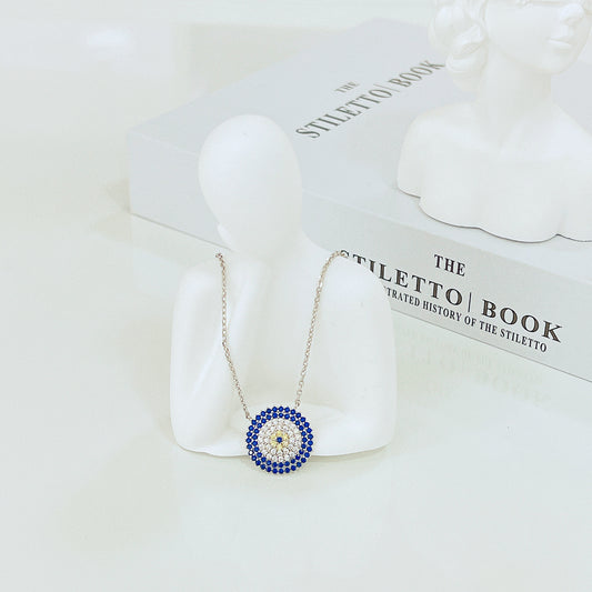 Sapphire yellow and white zircon round shape evil eye silver 925 necklace