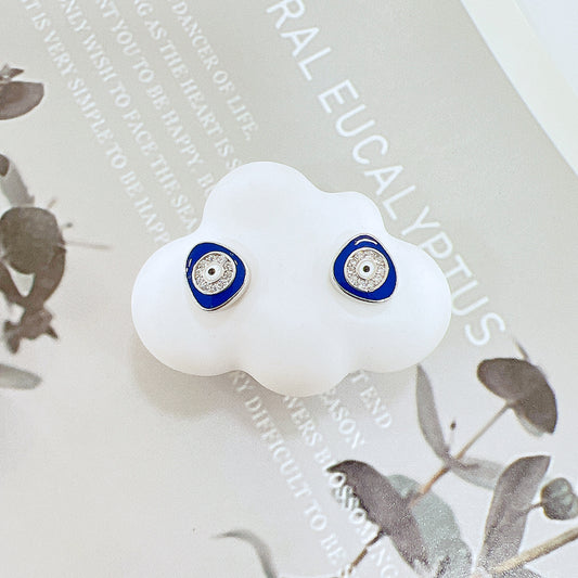 Dark blue enamel white zircon marquise evil eye silver 925 earrings