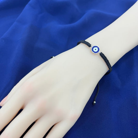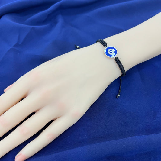 Dark blue enamel plain round shape evil eye silver 925 jewelry macrame bracelet