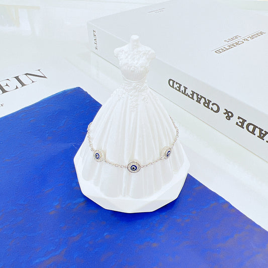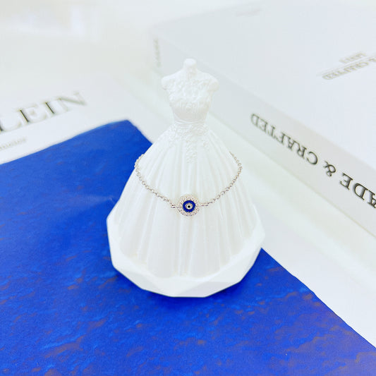 Dark blue enamel white zircon round shaped evil eye silver 925 jewelry bracelet
