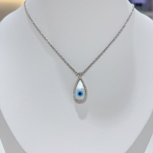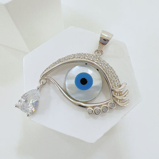 White shell evil eye with tear drop silver 925 jewelry pendant